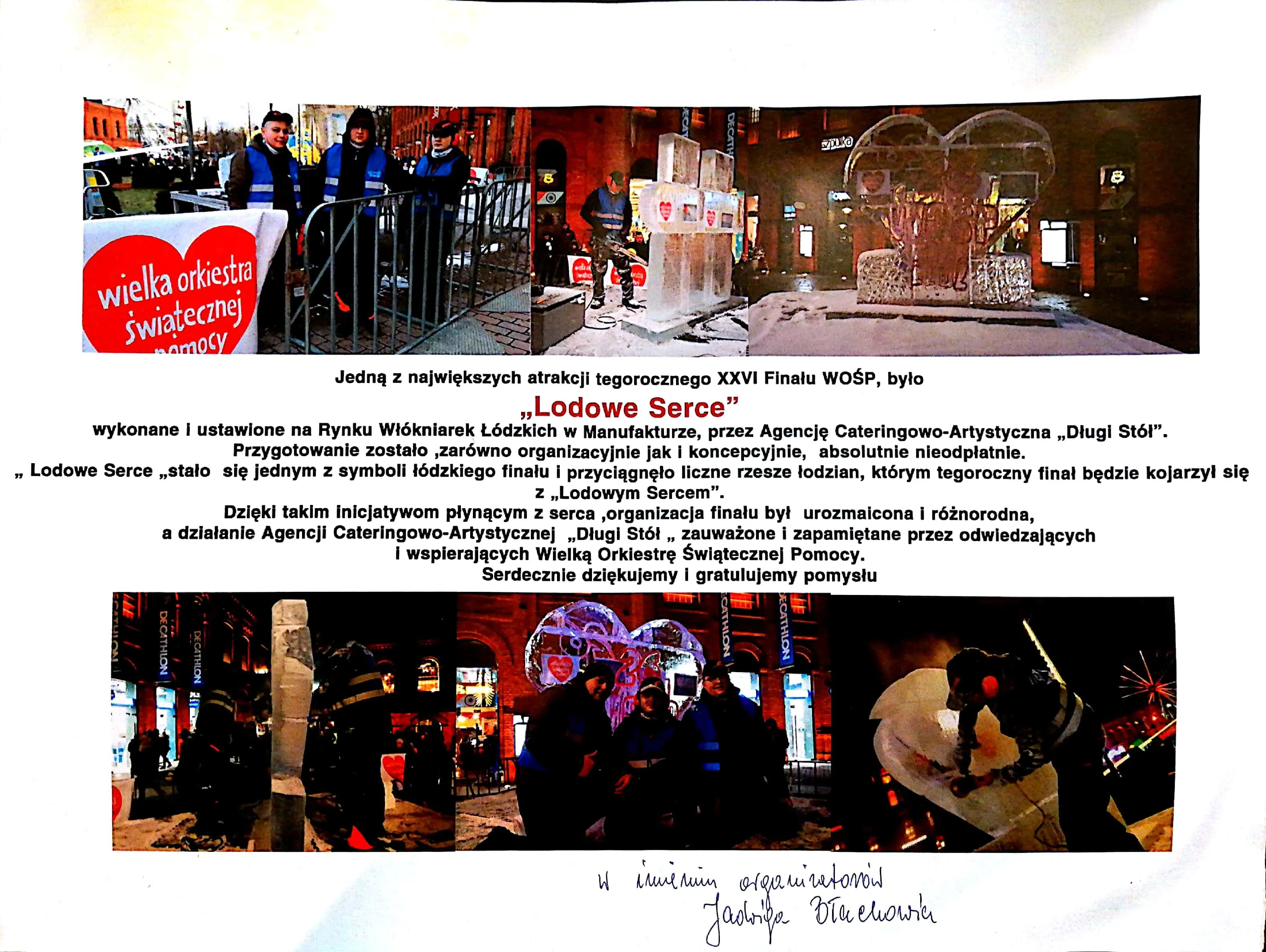 Początek naszej pięknej tradycji wspierania WOŚP. Pierwszy raz zaprezentowaliśmy nasze lodowe dzieła podczas finału, rozpoczynając tym samym wieloletnią współpracę.